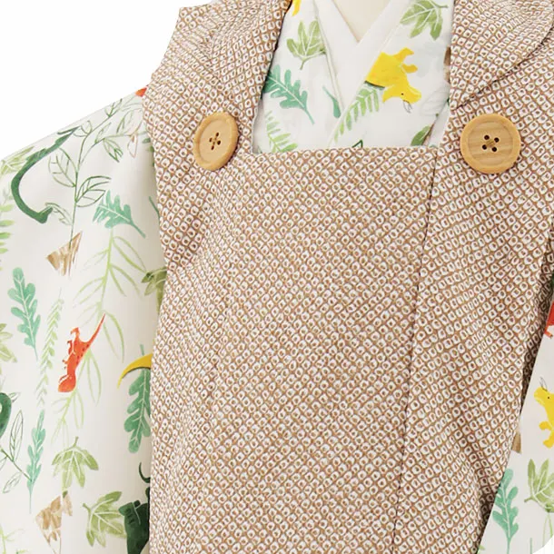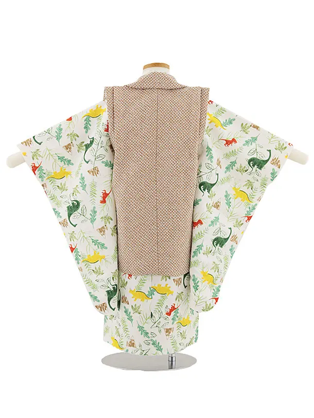七五三レンタル(3歳男児被布)W334 キャメル×白地恐竜柄