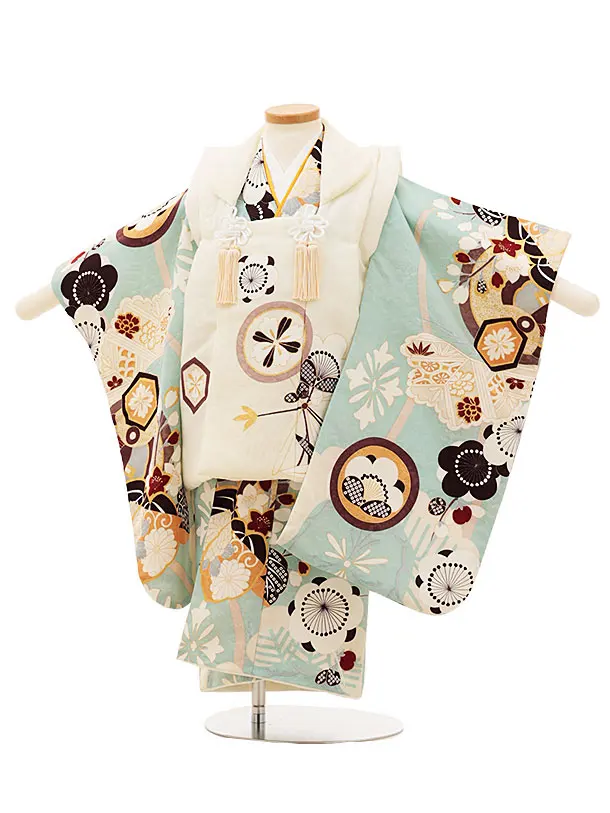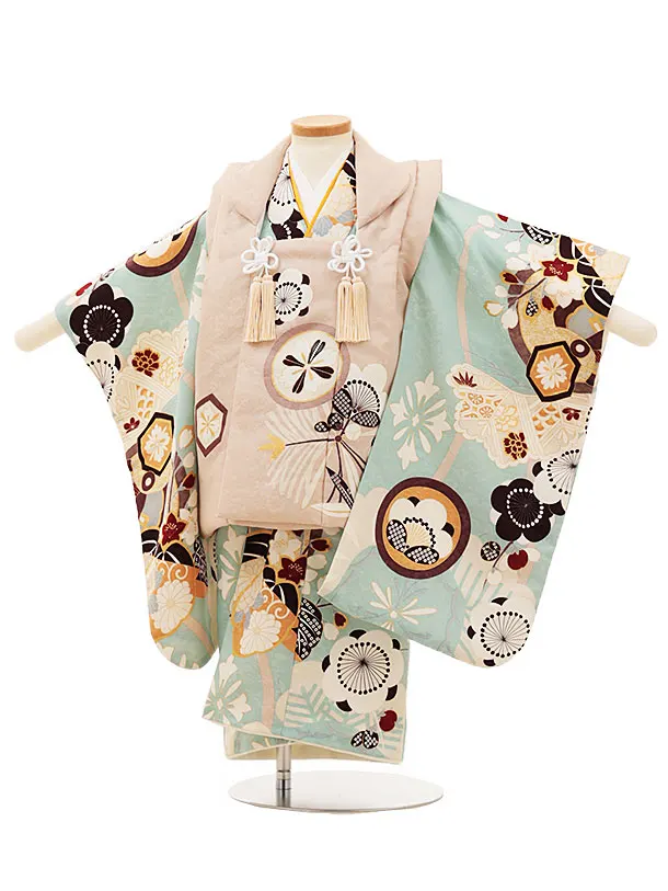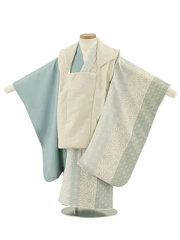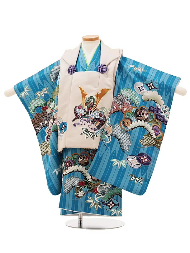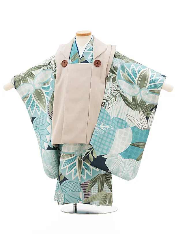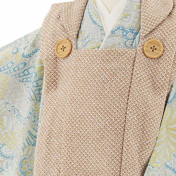 七五三レンタル(3歳男児被布)W335 キャメル×水色変わり柄