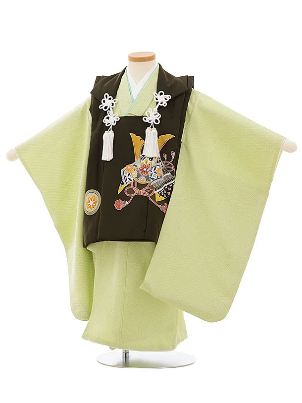 七五三(3歳男児被布)W338【高級正絹】緑絞り金コマ刺繍宝尽くし