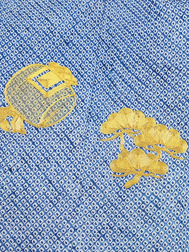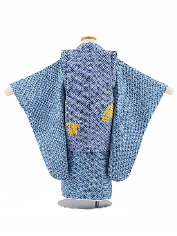 七五三(3歳男児被布)W339【高級正絹】青絞り金コマ刺繍宝尽くし