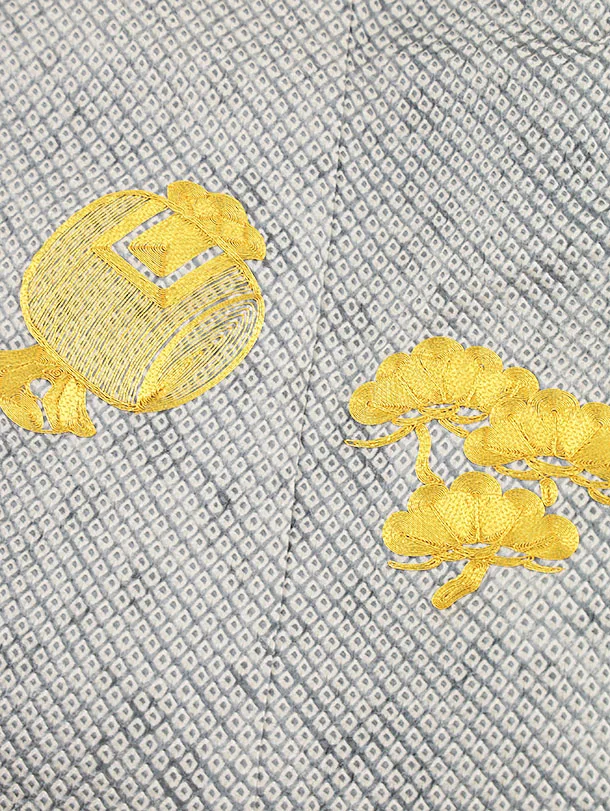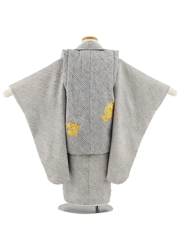 七五三(3歳男児被布)W340【高級正絹】グレー絞り金コマ刺繍宝尽くし
