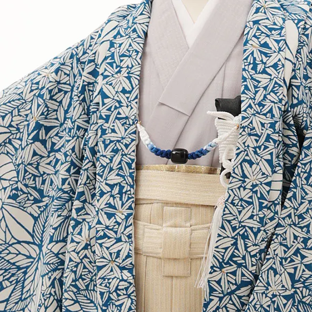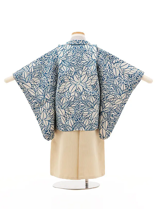 かんたん七五三(3歳男袴)W342 ラフィネココ 白ブルーリーフ×クリームラメ