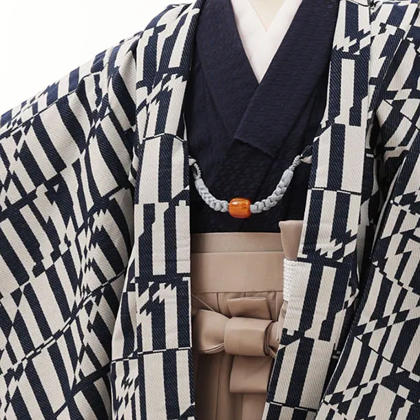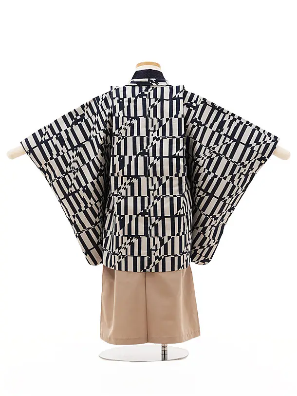 七五三(3歳男袴)W343 ラフィネココ 白紺 幾何学×ベージュ