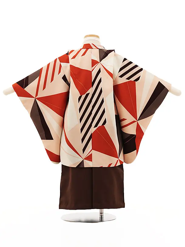 七五三(3歳男袴)W350 ラフィネココ ピンクブラウン幾何学×ブラウン
