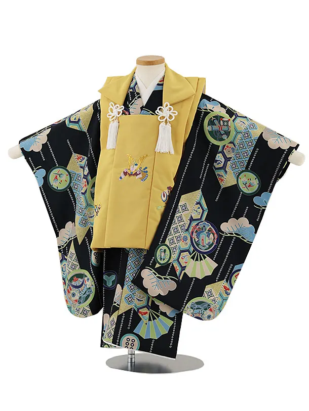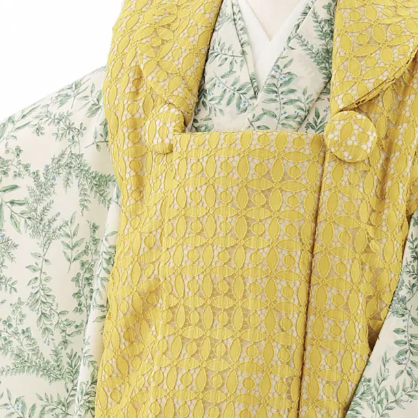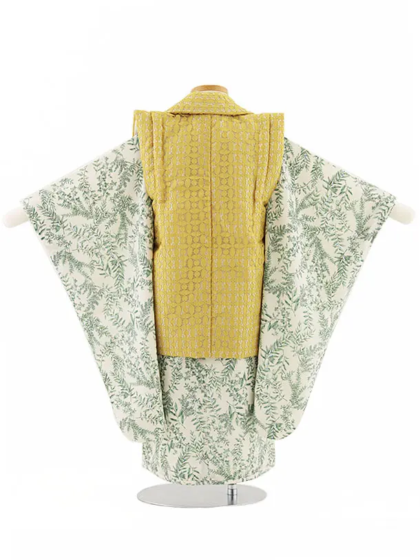 七五三レンタル(3歳男児被布)W359 黄レース×薄ベージュボタニカル