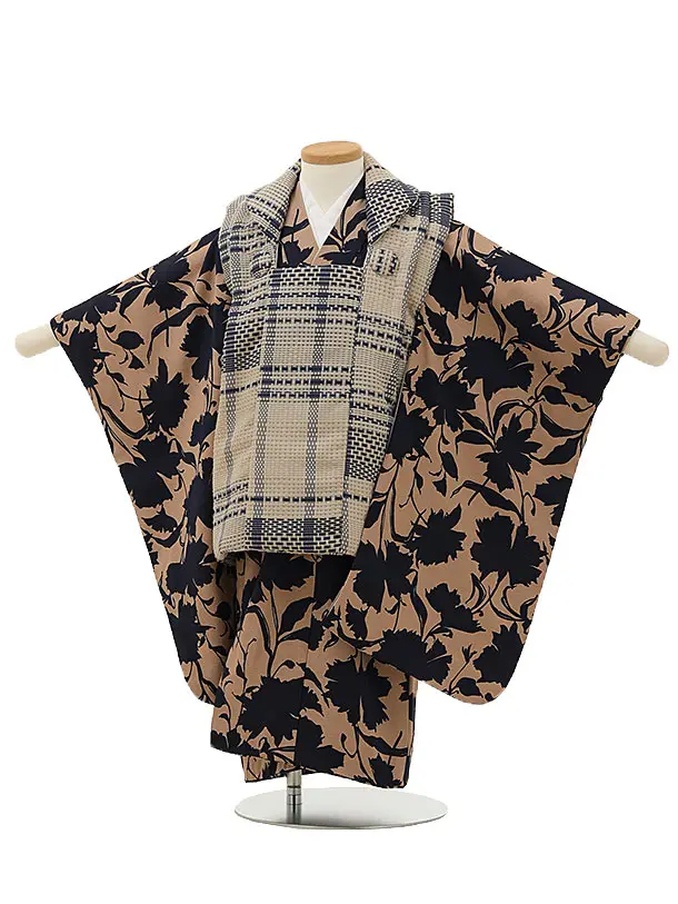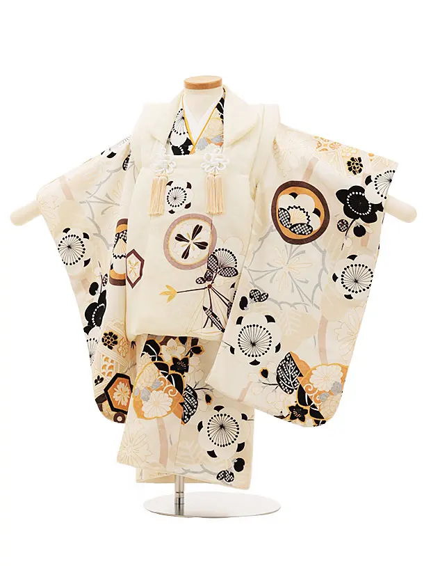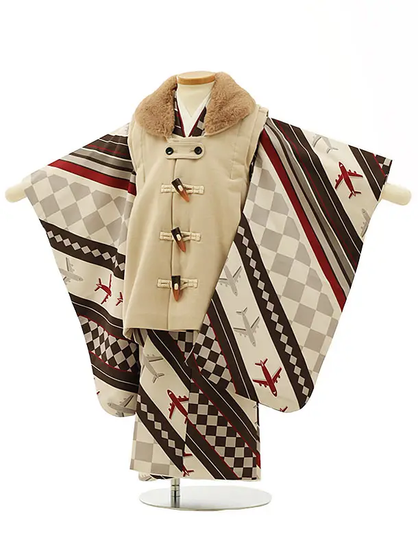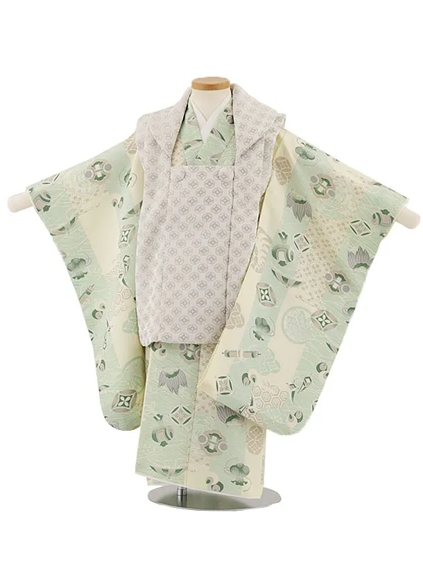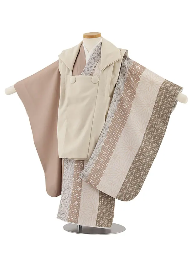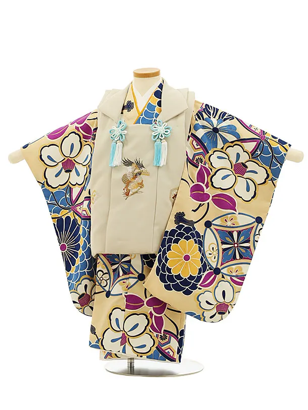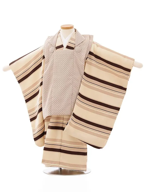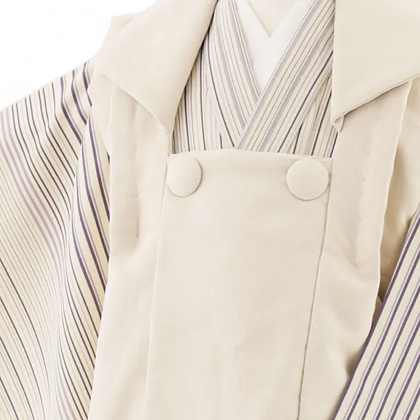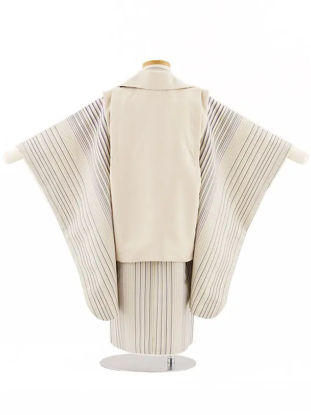 七五三レンタル(3歳男児被布)W360 アイボリー×パープルストライプ