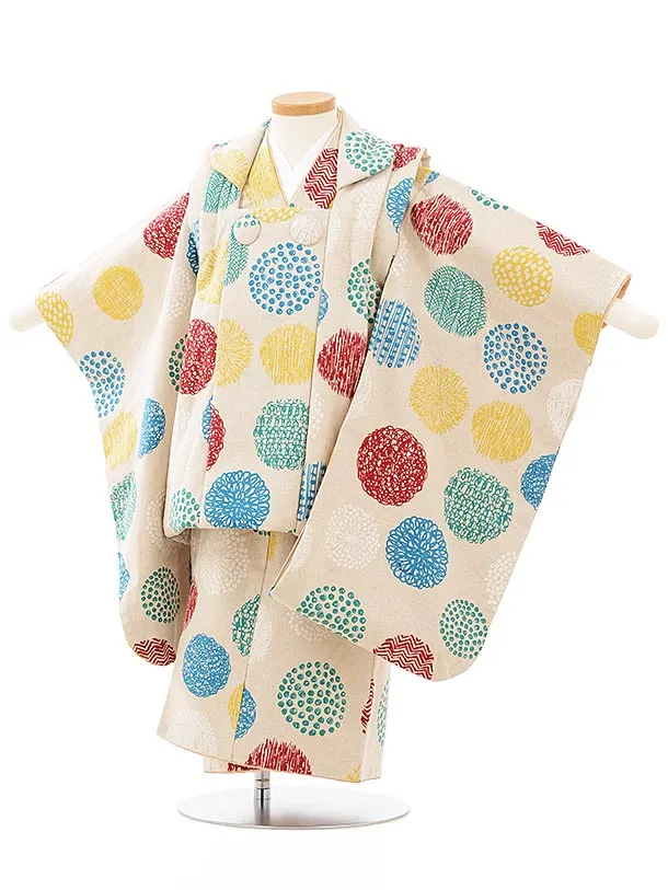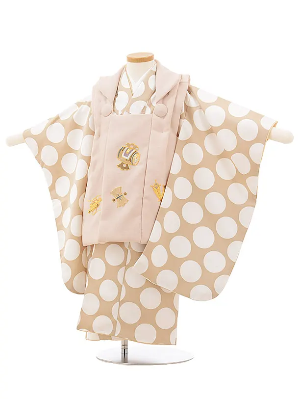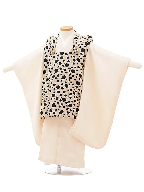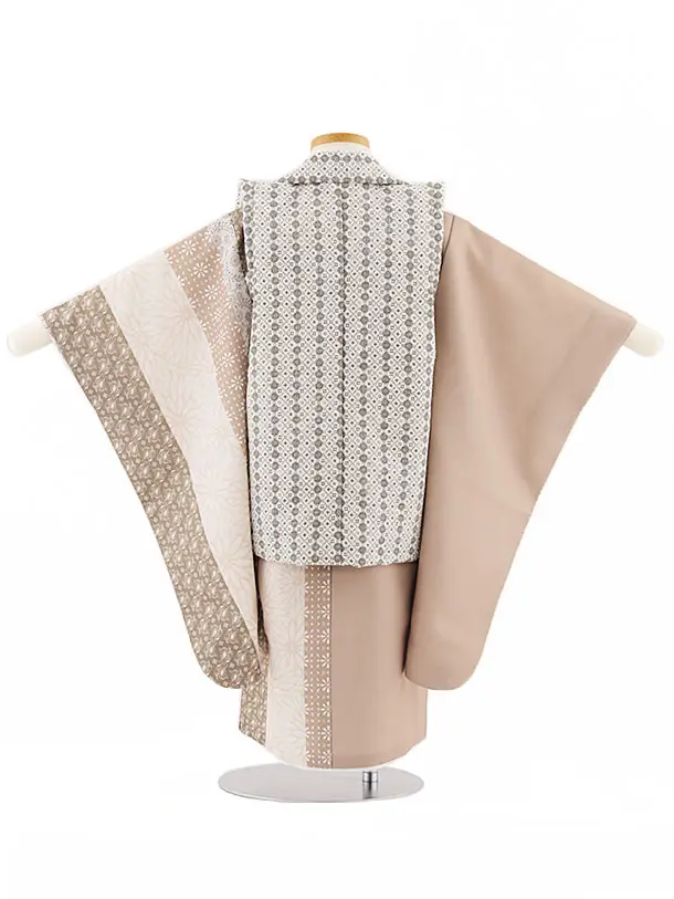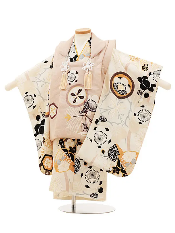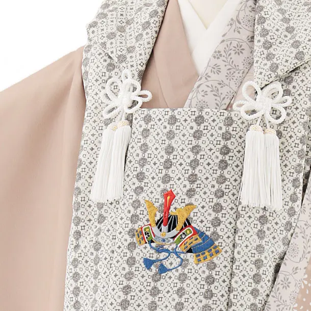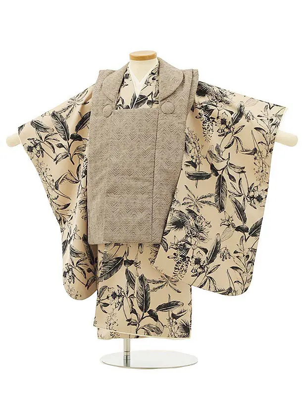 七五三レンタル(3歳男児被布)W361 ベージュ刺繍兜×ベージュ片身替り