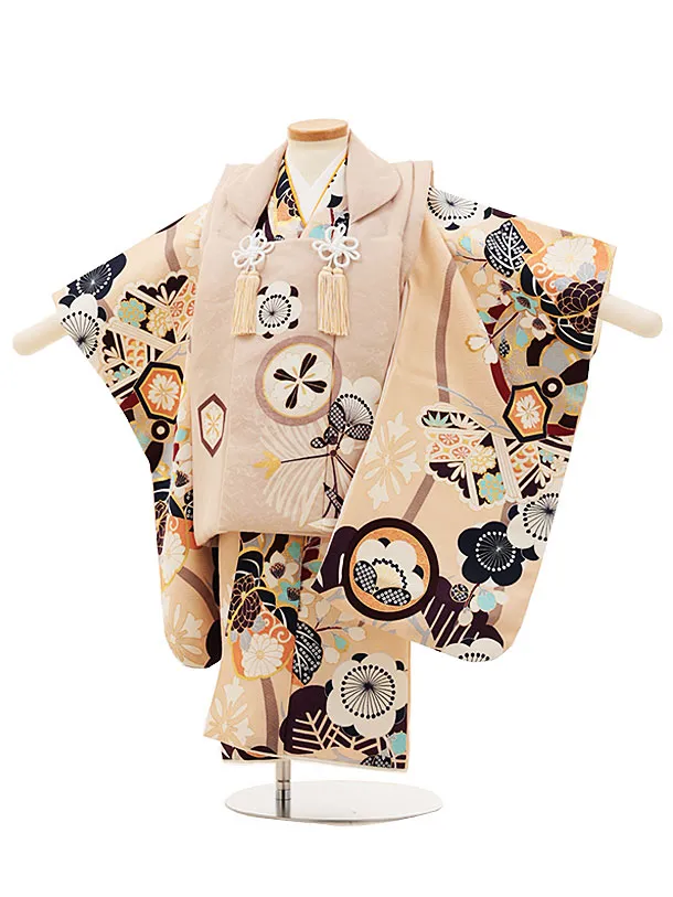七五三レンタル(3歳男児被布)W362 キャメル×ベージュ片身替り