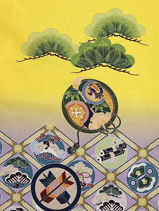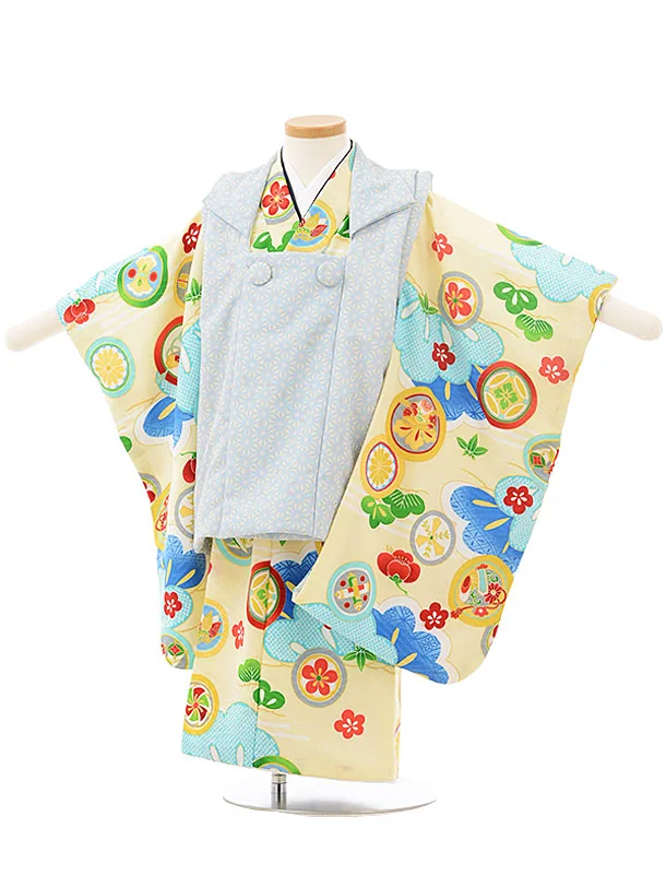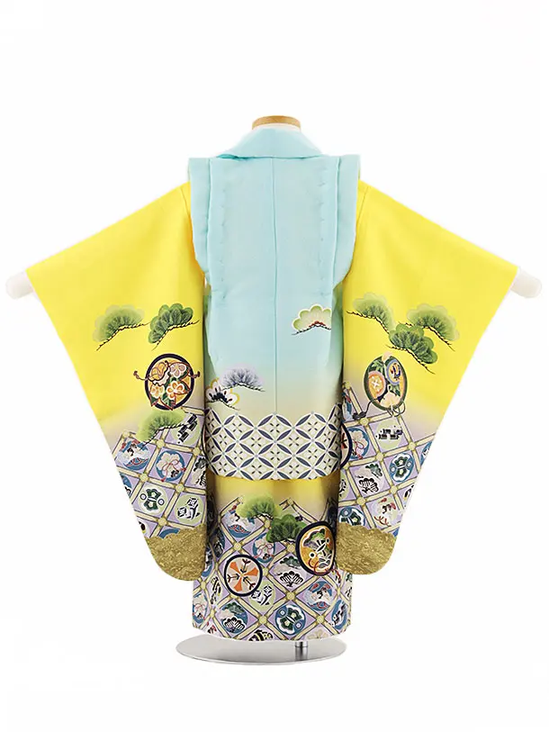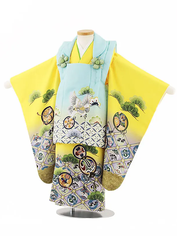 七五三レンタル(3歳男児被布)W364 水色鷹×黄色吉祥文様