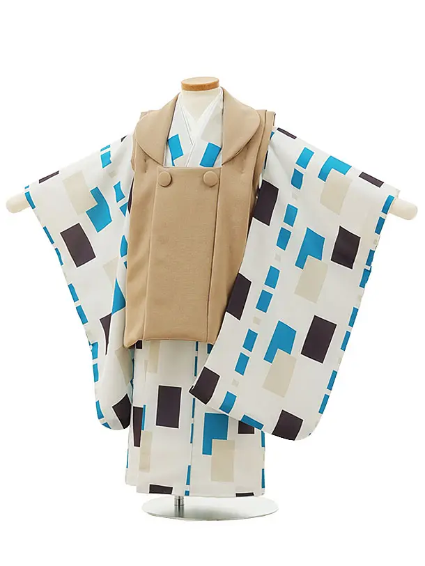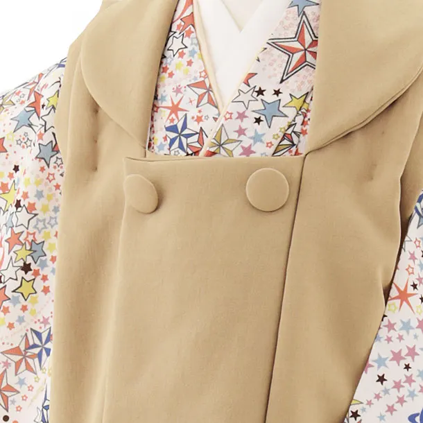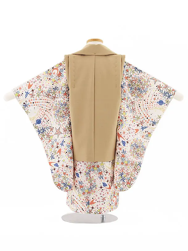 七五三レンタル(3歳男児被布)W367 キャメル×オフホワイト オレンジ宇宙