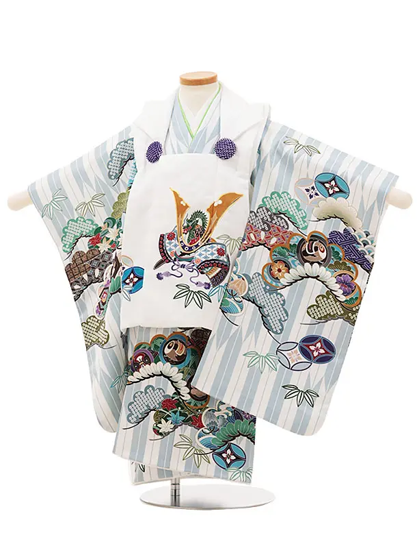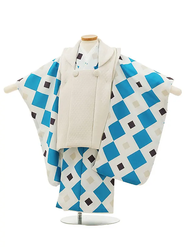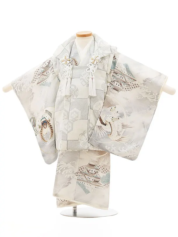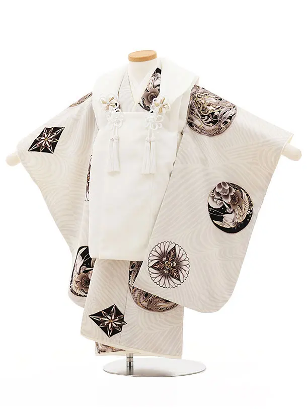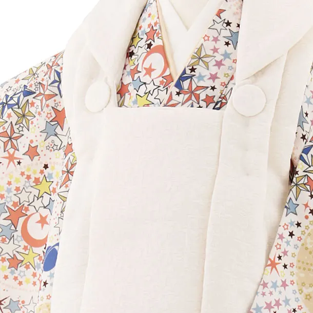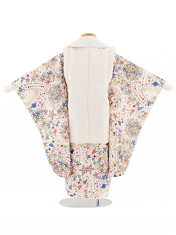 七五三レンタル(3歳男児被布)W368 アイボリー×オフホワイト オレンジ宇宙