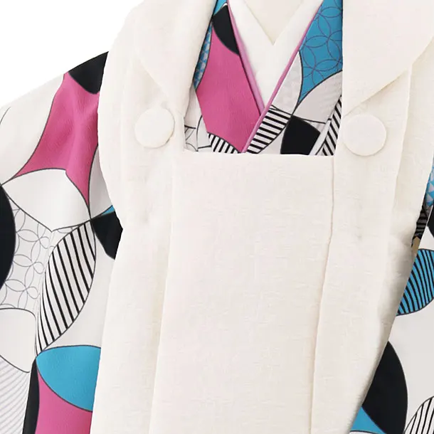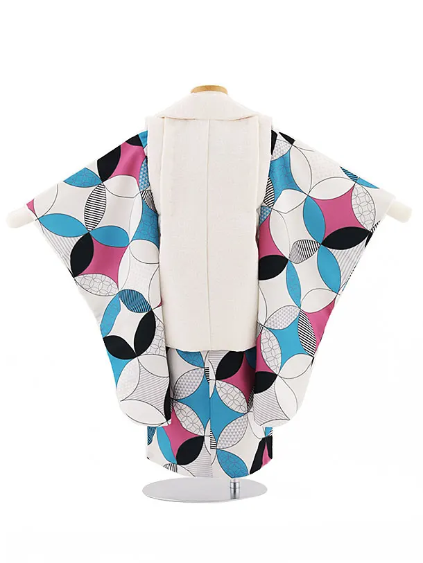 七五三レンタル(3歳男児被布)W372 アイボリー×薄グレー カラフル幾何学