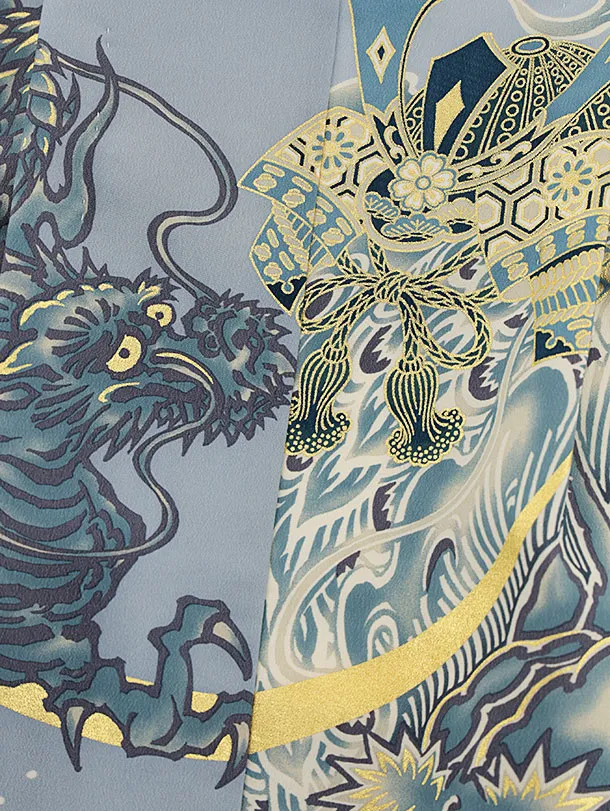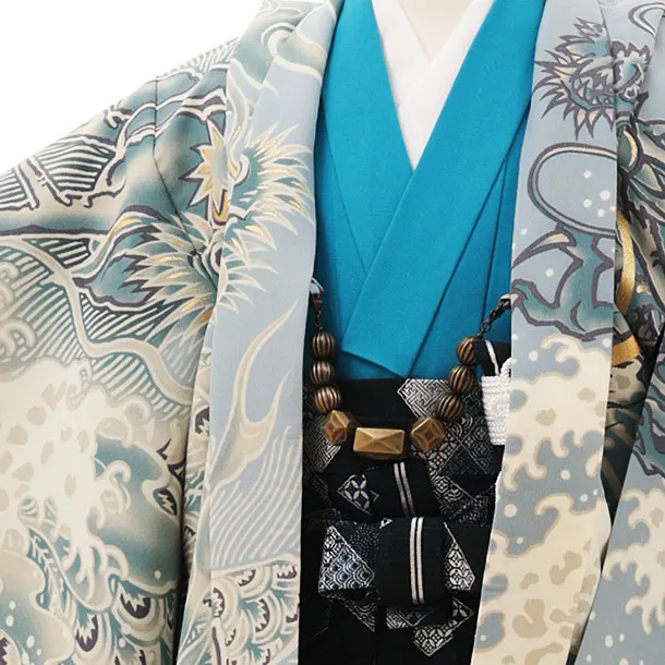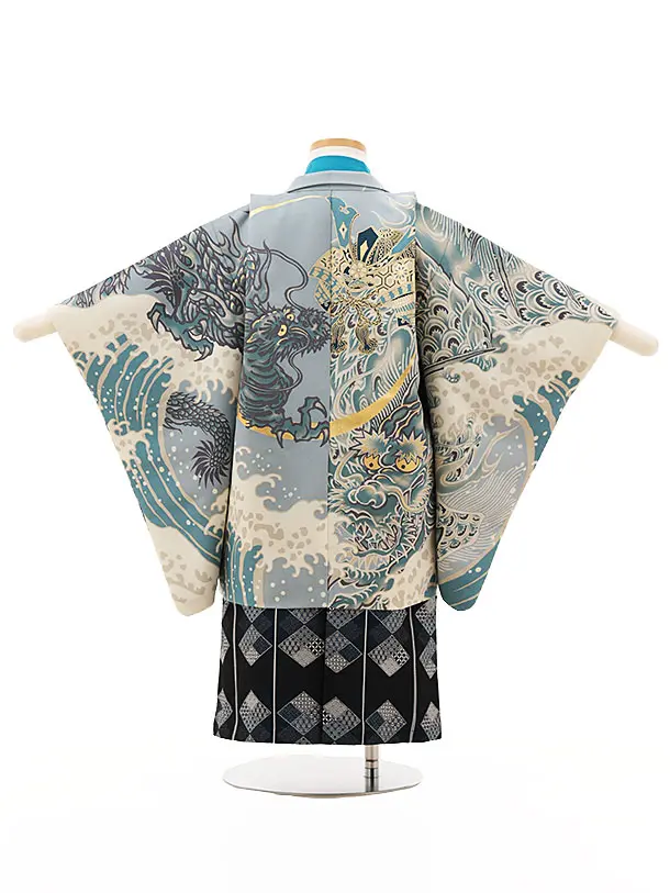七五三レンタル(3歳男袴)W378 水色 波に龍×紺