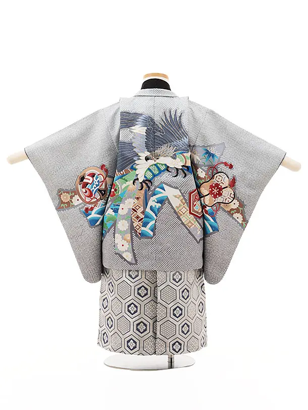 七五三レンタル(3歳男袴)W380 グレー束ね熨斗に鷹×シルバー亀甲