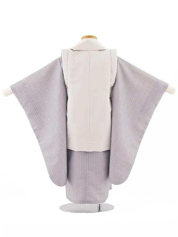 七五三レンタル(3歳男児被布)W385 白唐花×グレーストライプ