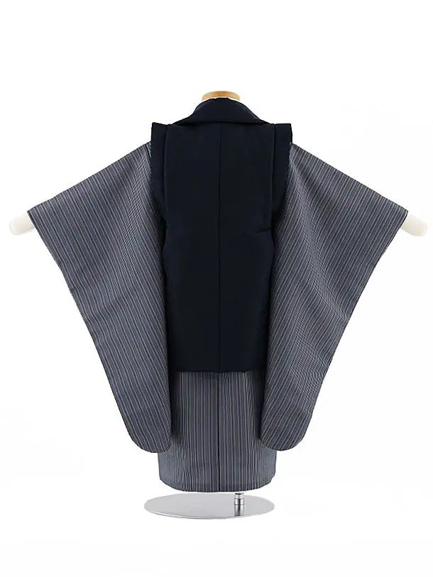 七五三レンタル(3歳男児被布)W387 紺唐花×ブルーストライプ