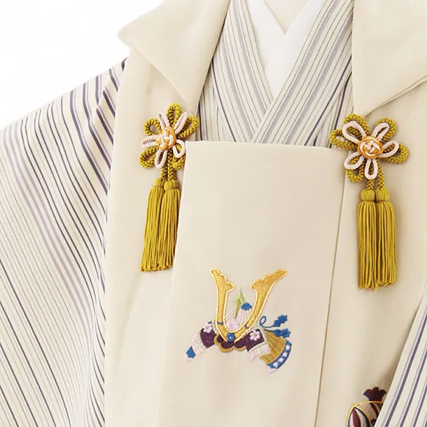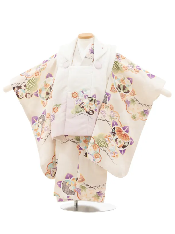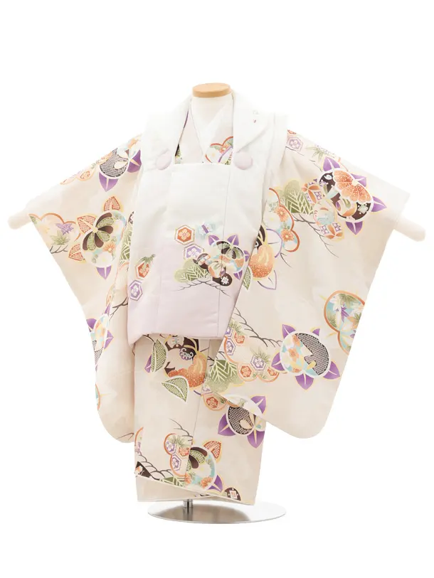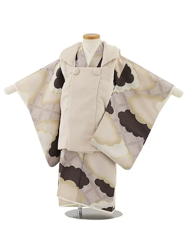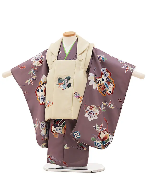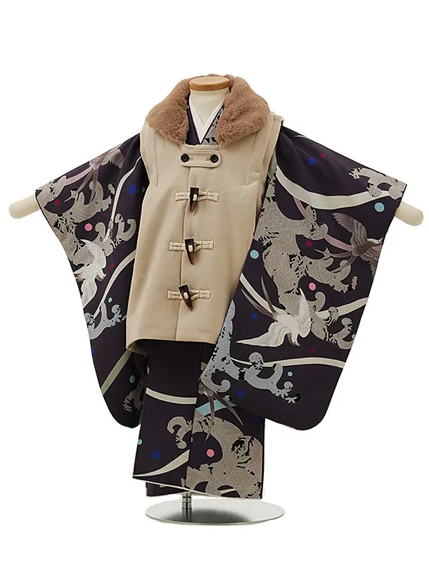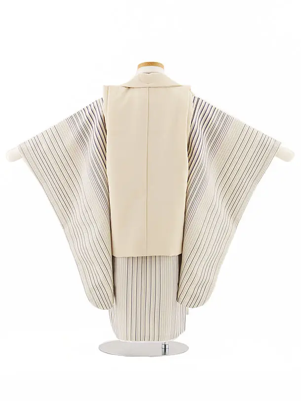 七五三レンタル(3歳男児被布)W392 クリーム地鷹×パープルストライプ