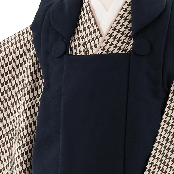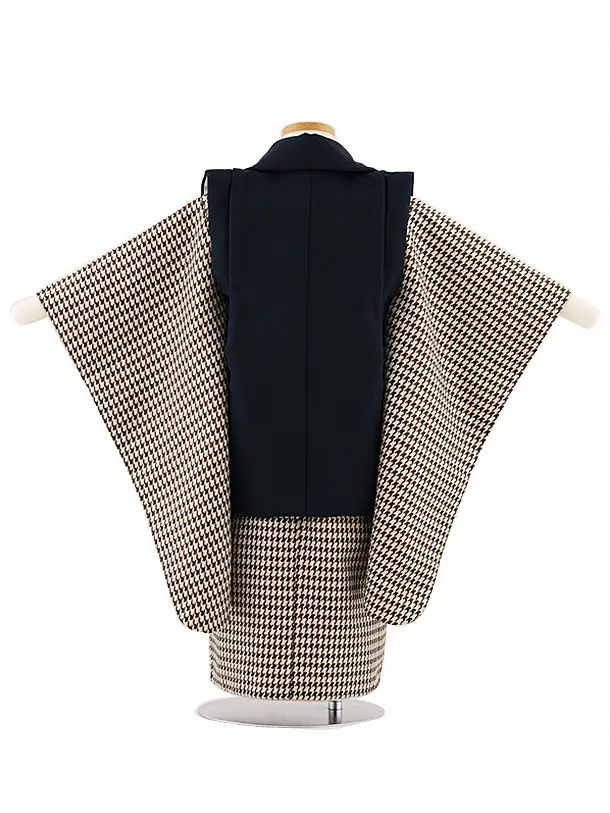 七五三レンタル(3歳男児被布)W400 紺唐花×ベージュ千鳥格子
