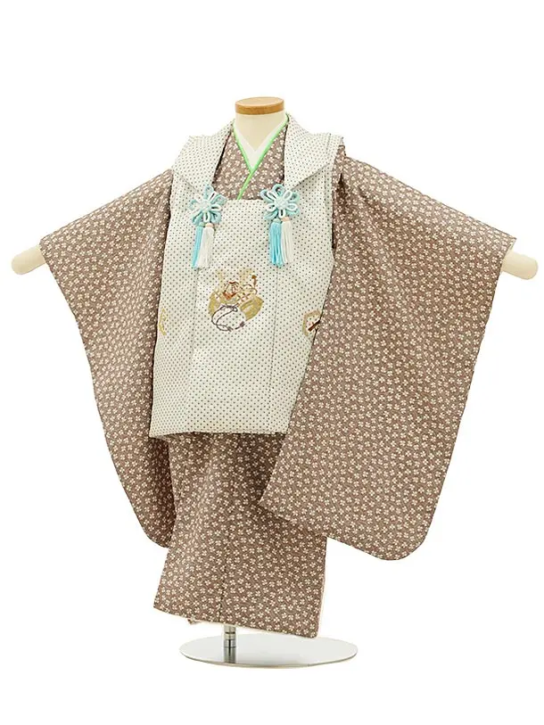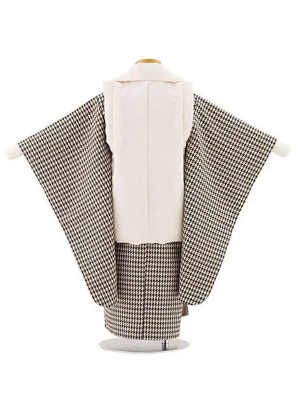 七五三レンタル(3歳男児被布)W402 アイボリー×ベージュ千鳥格子