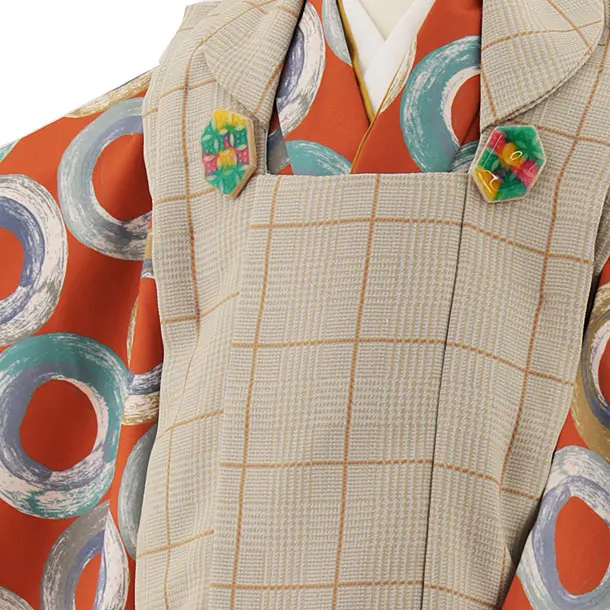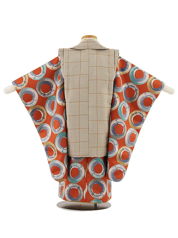七五三(3歳男児被布)W408 ラフィネココ ベージュポッピンドーナツ×オレンジ