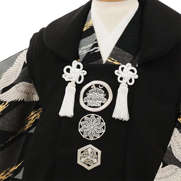 七五三レンタル(3歳男児被布)W410 LOWRYS FARM 黒うろこ 対い鶴