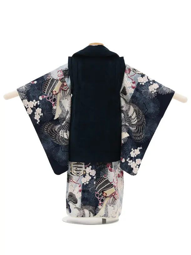 七五三レンタル(3歳男児被布)W413 華徒然 紺ベルベット×紺古典