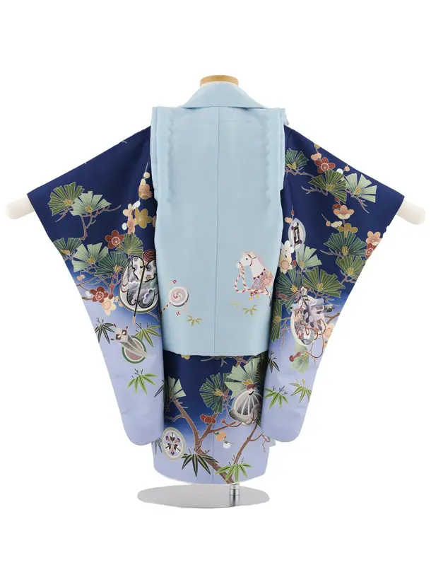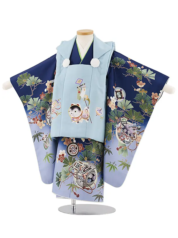 七五三レンタル(3歳男児被布)W425 水色 犬張り子×ブルーぼかし松竹梅