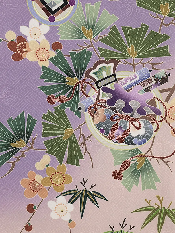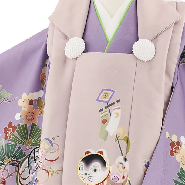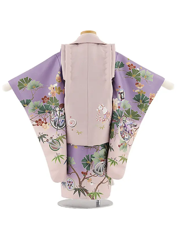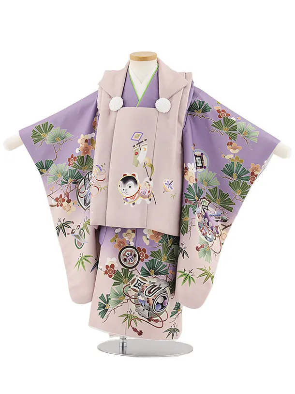 七五三(3歳男児被布)W426 ピンクベージュ 犬張り子×パープルぼかし松竹梅