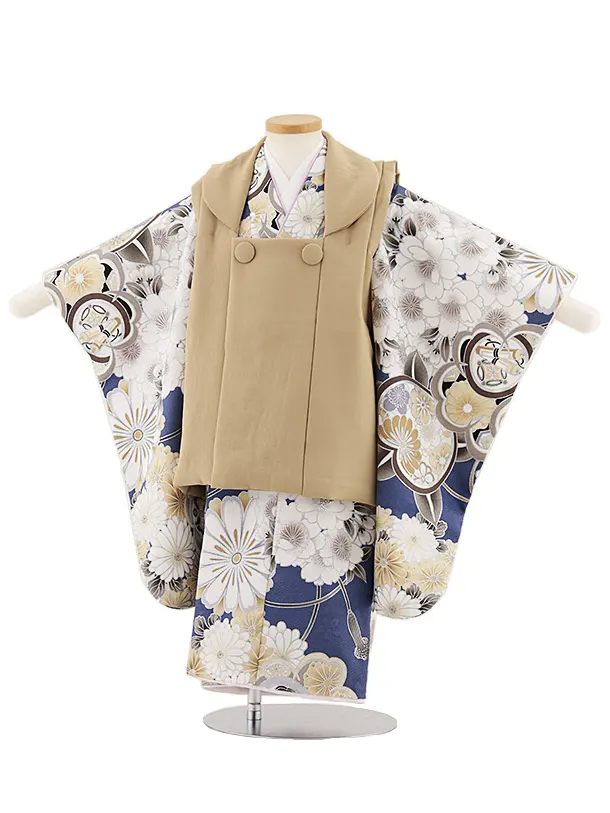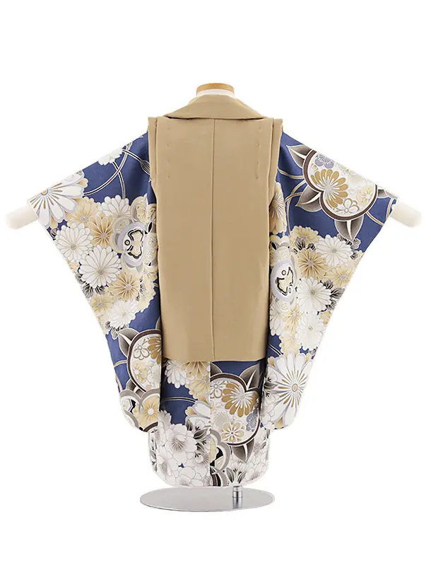 七五三レンタル(3歳男児被布)W428 ベージュ×青地橘桜