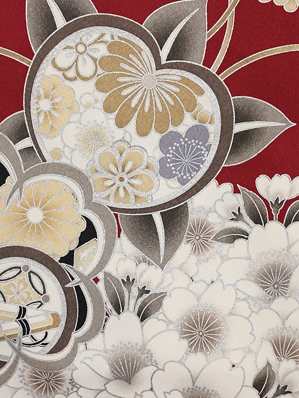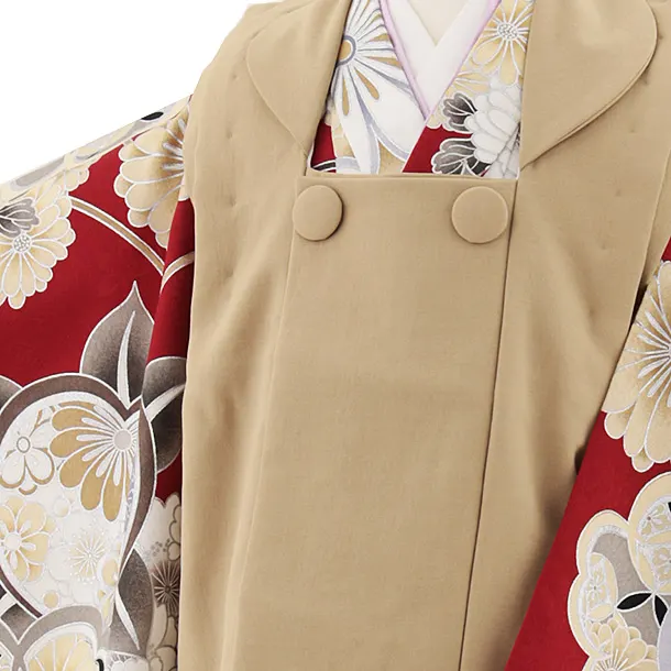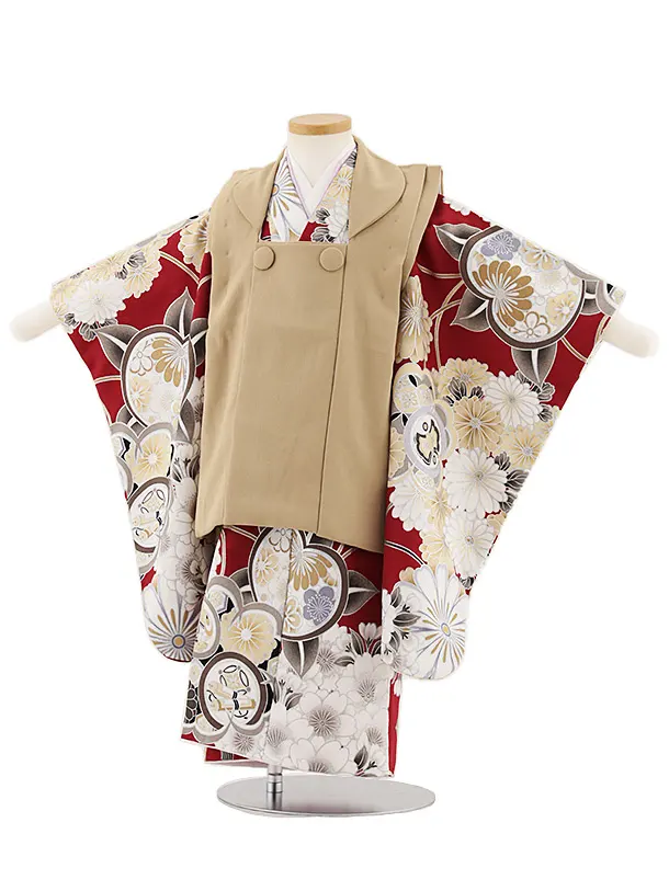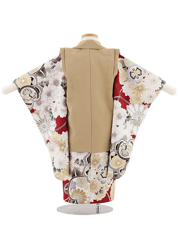 七五三レンタル(3歳男児被布)W434 ベージュ×赤橘桜