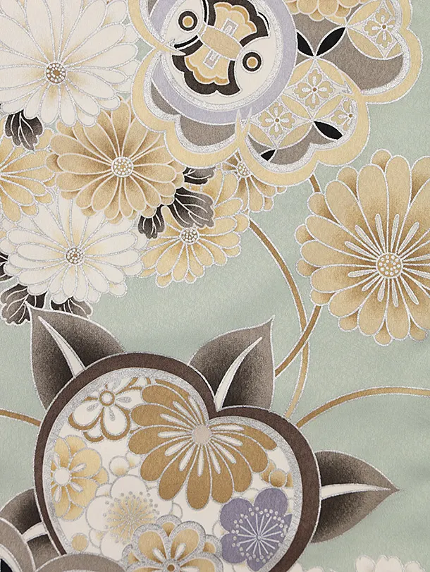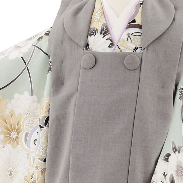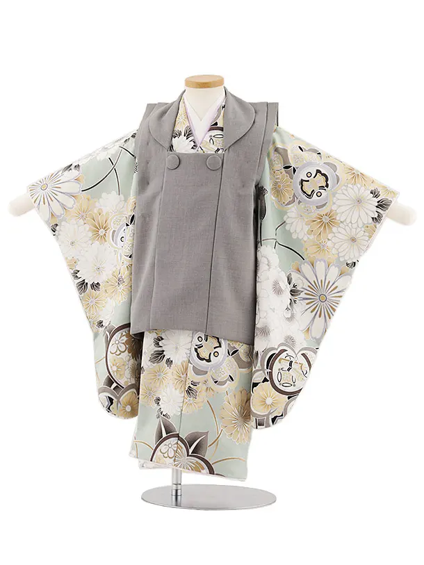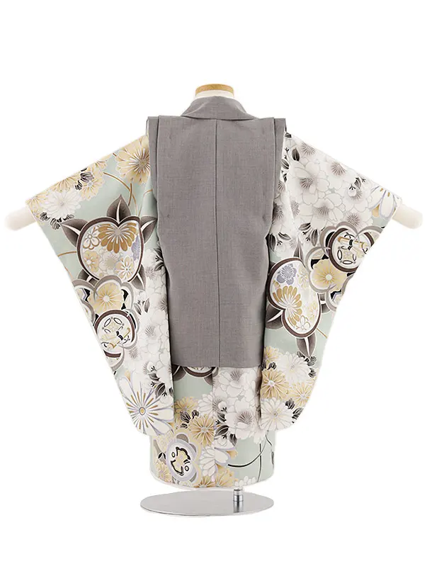 七五三レンタル(3歳男児被布)W435 グレー×グリーン橘桜