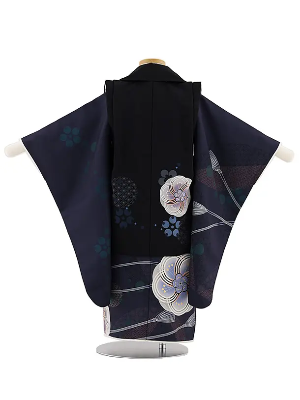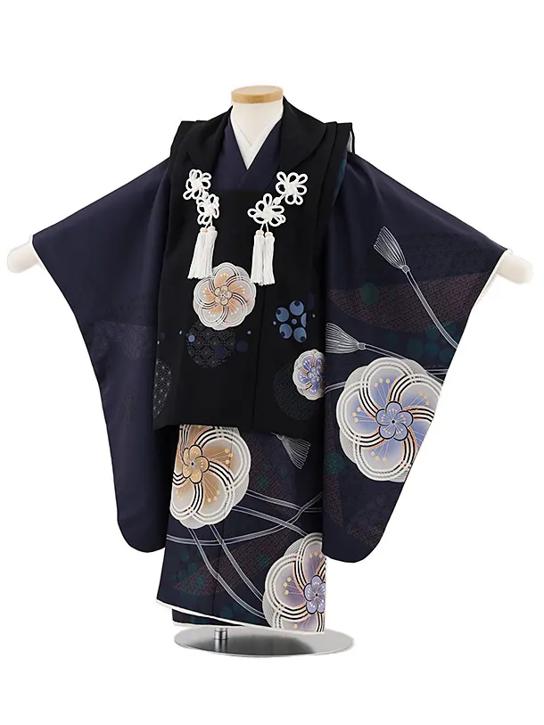 七五三レンタル(3歳男児被布)W451 黒×パープルねじり梅