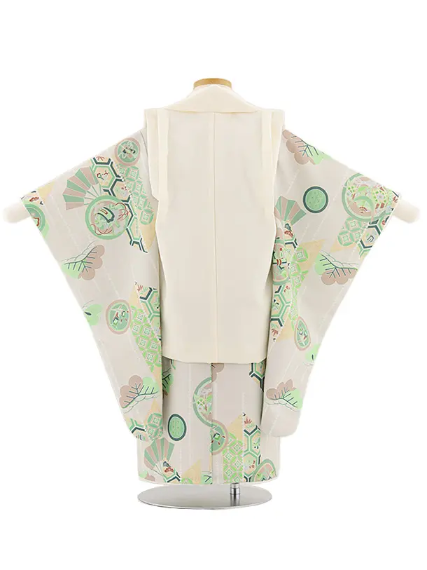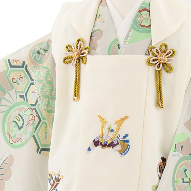 七五三レンタル(3歳男児被布)W453 クリーム兜刺繍×ベージュ矢柄丸紋