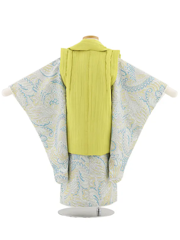 七五三レンタル(3歳男児被布)W460 ライムグリーン×水色変わり柄