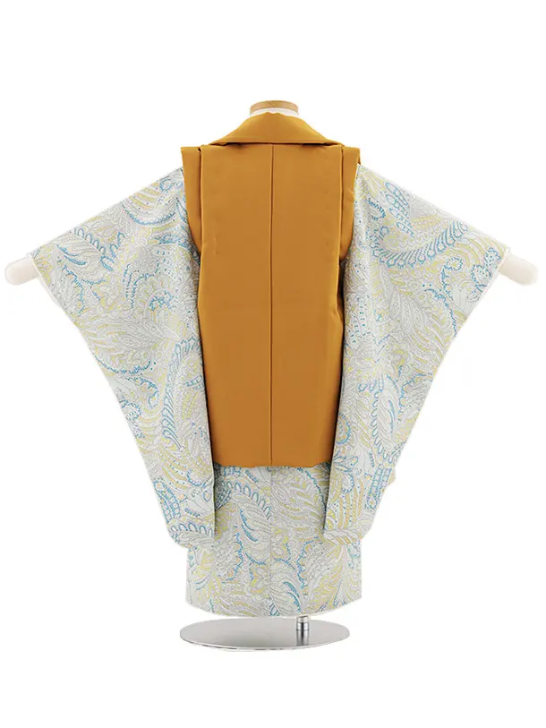 七五三レンタル(3歳男児被布)W461 キャメルブラウン×水色変わり柄