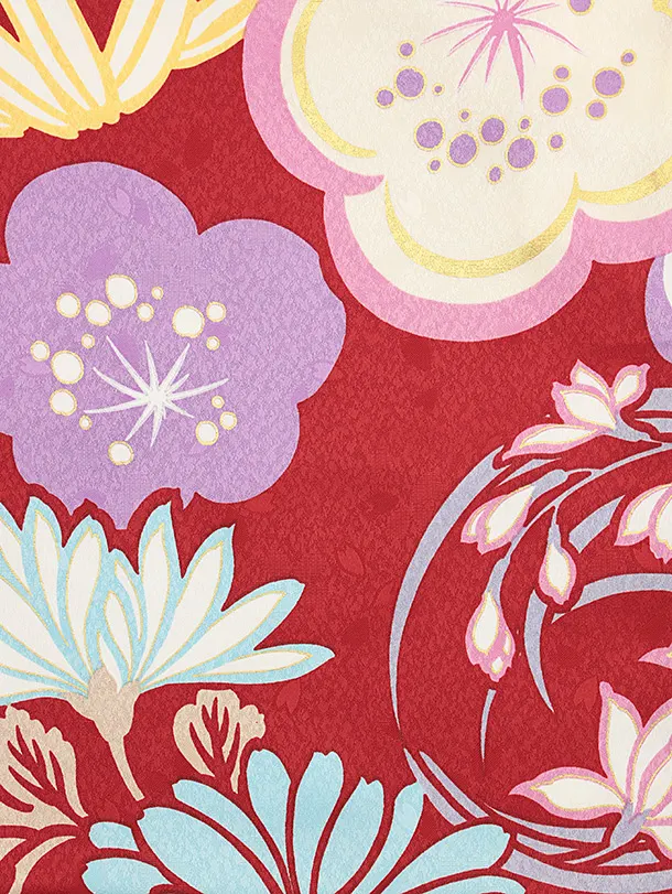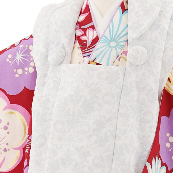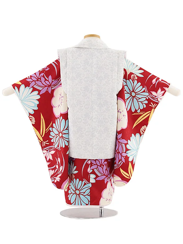 七五三レンタル(3歳男児被布)W462 白地ダマスク×赤梅菊