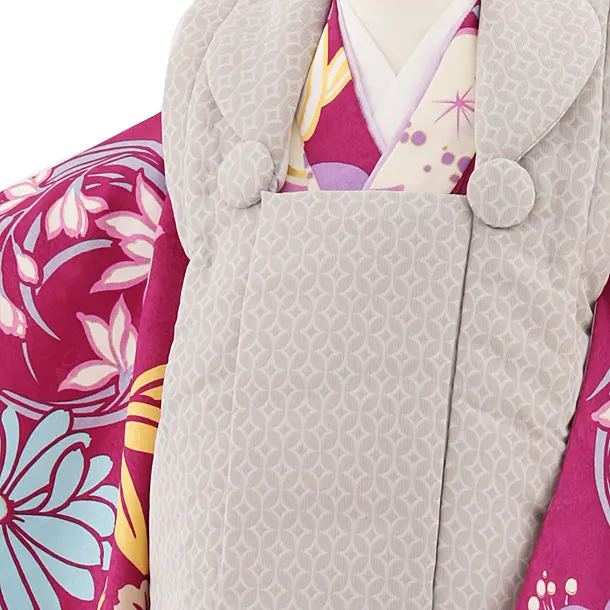 七五三レンタル(3歳男児被布)W463 グレージュ七宝×チェリーピンク梅菊