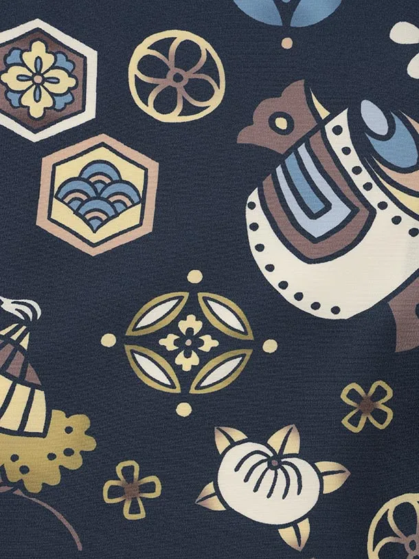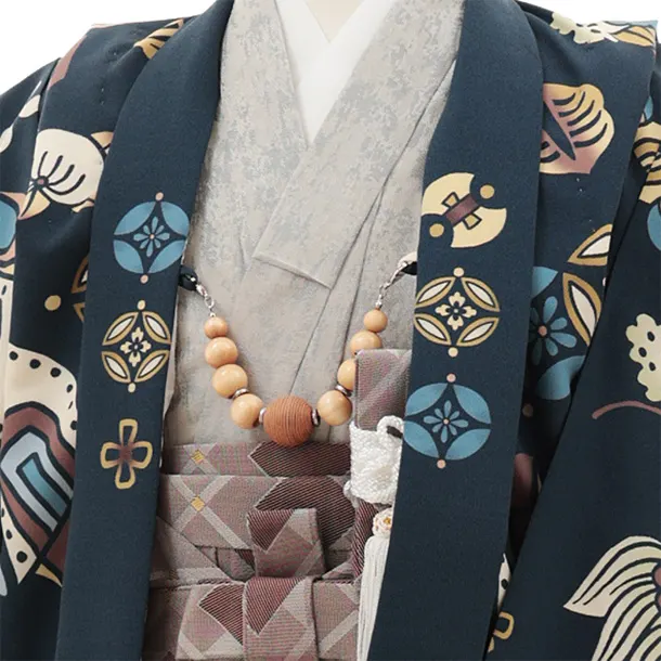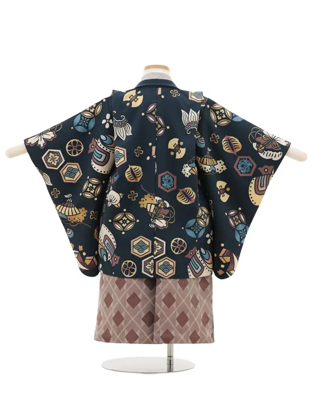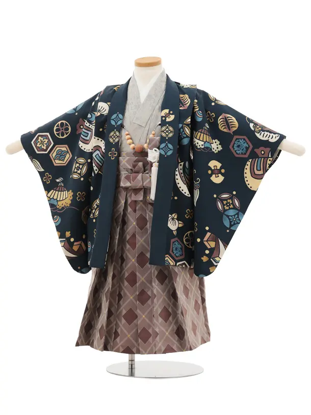 七五三(3.4歳男児袴)W465 花わらべ 紺宝づくし×パープルブラウン