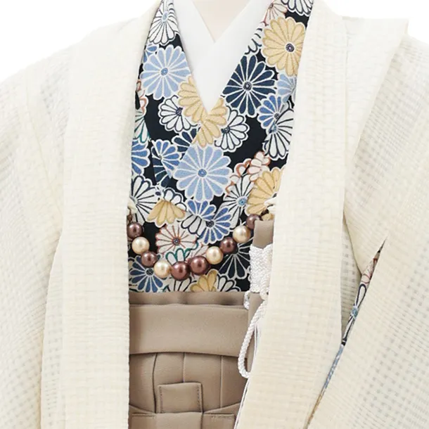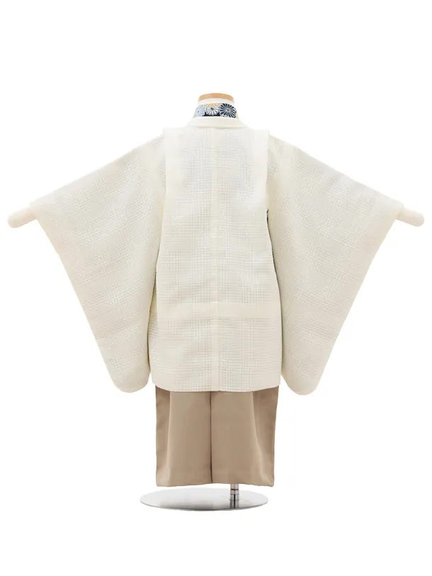 かんたん(3.4歳袴)W473 ラフィネココ クリームチェック織×モカベージュ