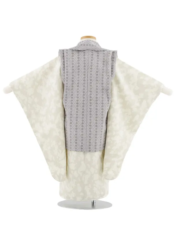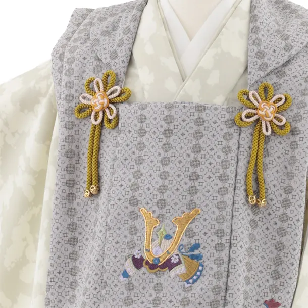七五三レンタル(3歳男児被布)W477 ベージュ刺繍兜×グレージュ変わり柄