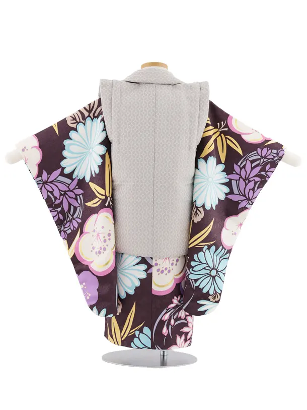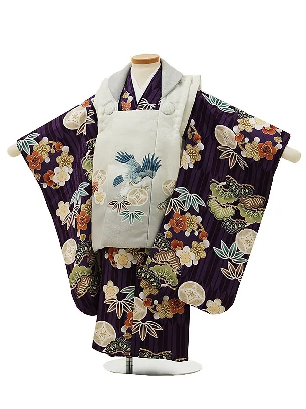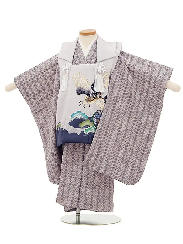 七五三レンタル(3歳男児被布)W480 グレージュ七宝×パープル梅菊