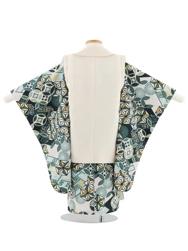 七五三レンタル(3歳男児被布)W481 クリーム×ベージュ七宝変わり柄