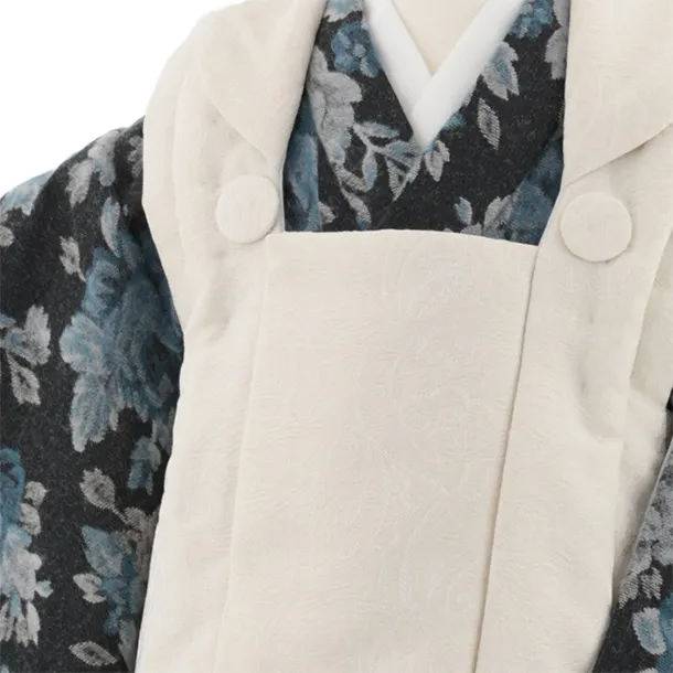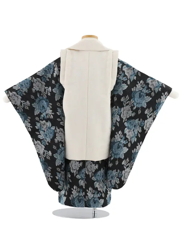 七五三レンタル(3歳男児被布)W485 オフホワイト×黒地花