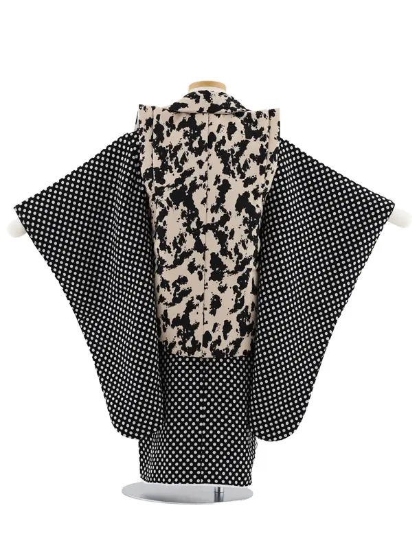 七五三レンタル(3歳男児被布)W486 ブラウン×黒白ドット