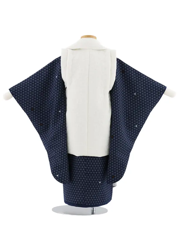 七五三レンタル(3歳男児被布)W492 白×青地 毘沙門亀甲