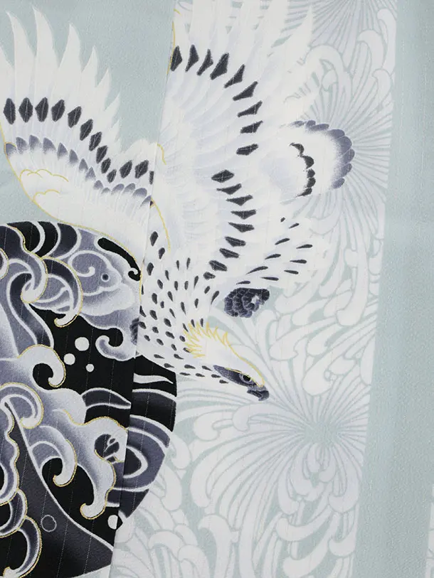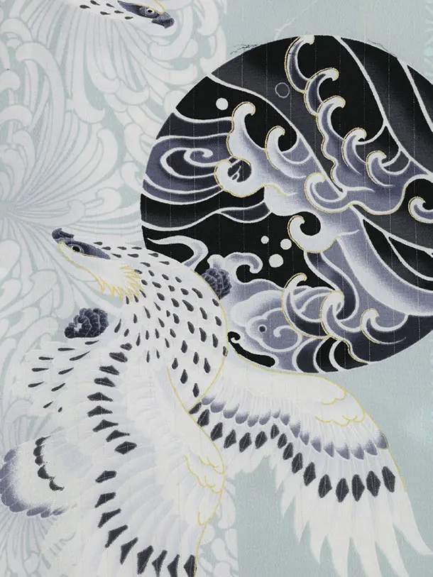 七五三(3歳)W497 JAPAN STYLE オフ白ベルベット×水色鷹に乱菊縞
