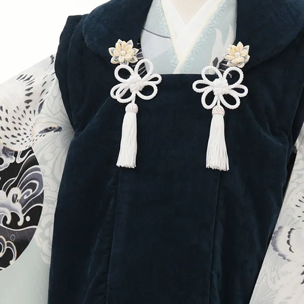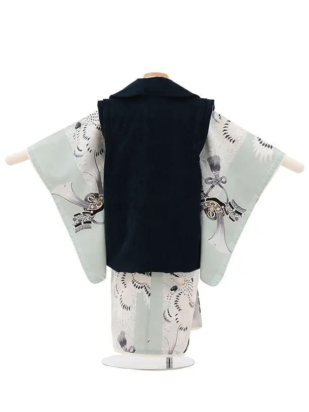 七五三(3歳被布)W498 JAPAN STYLE 紺ベルベット×水色鷹に乱菊縞