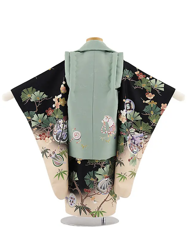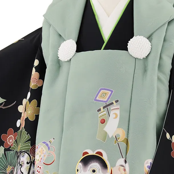 七五三レンタル(2歳男児被布)W503 グリーン犬張り子×黒ぼかしベージュ