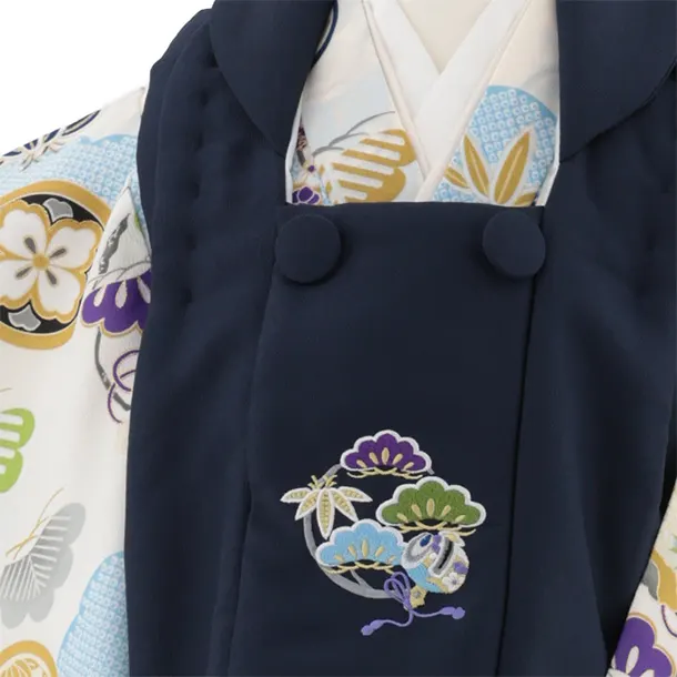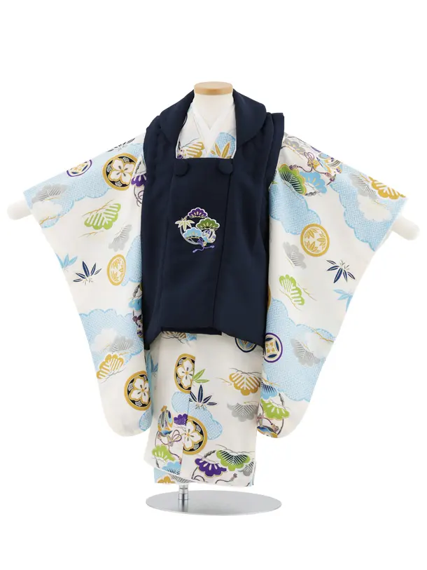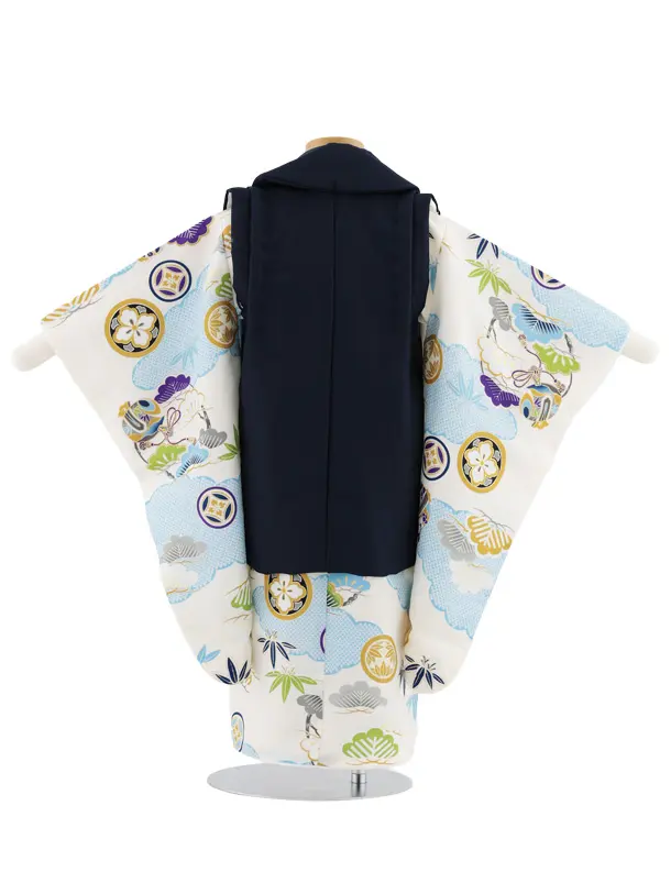 七五三レンタル(3歳男児被布)W517 小町kids 紺地刺繍×クリーム吉祥文様