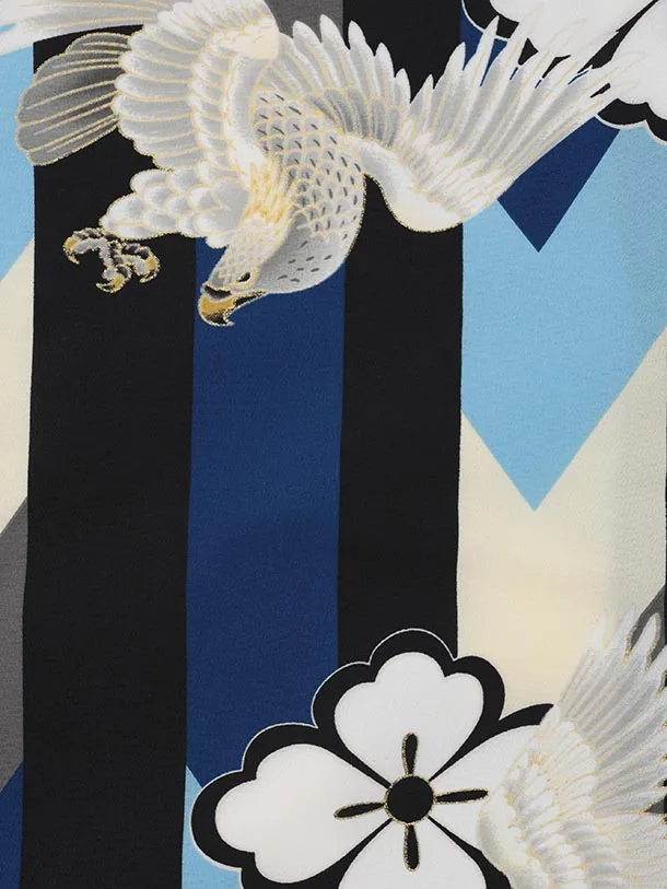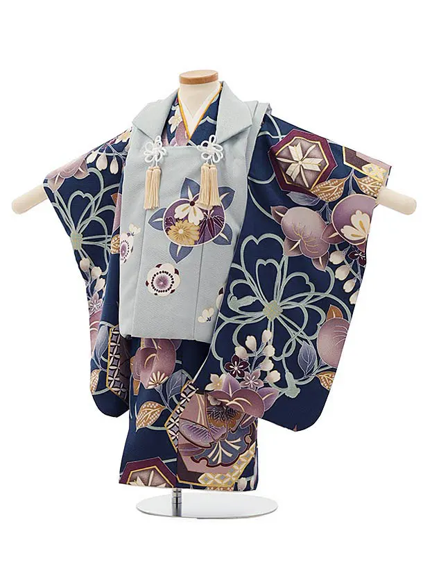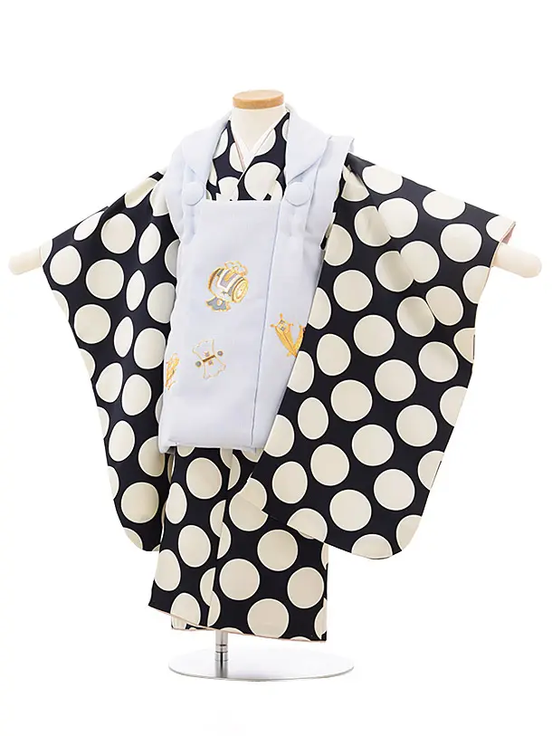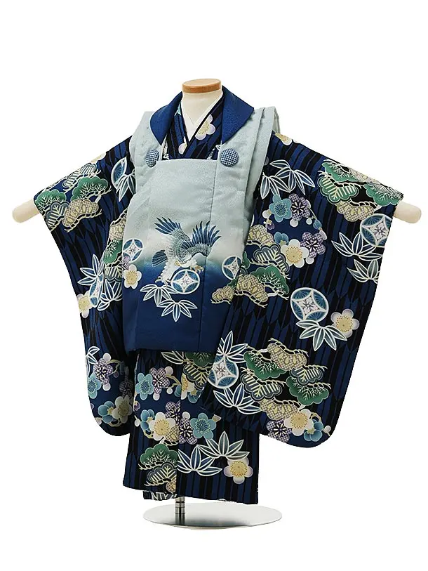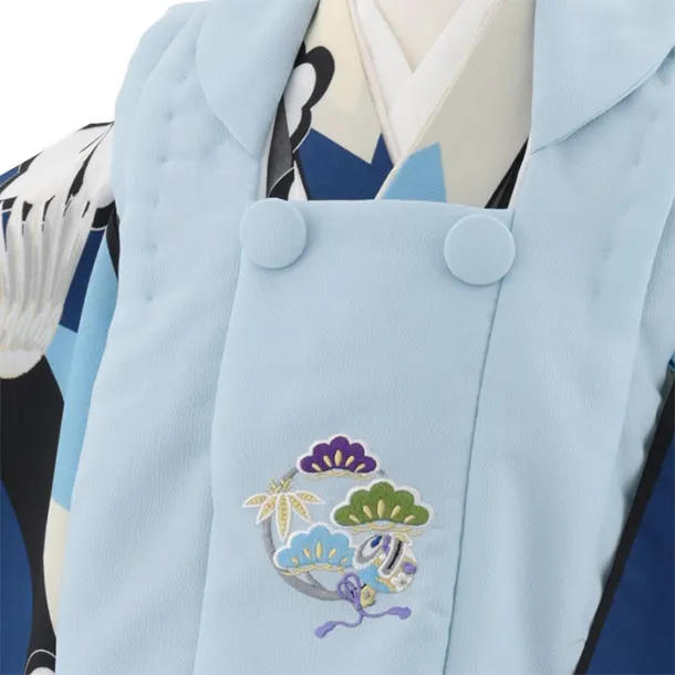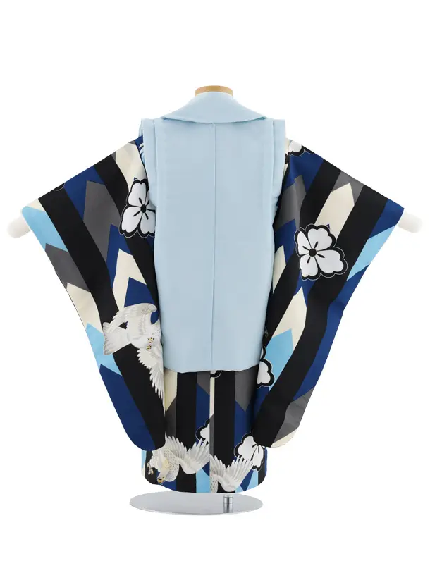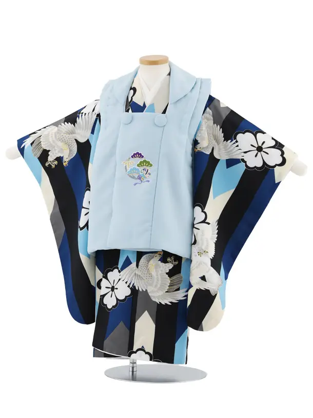 七五三レンタル(3歳男児被布)W520 小町kids 水色刺繍×青ストライプに鷹